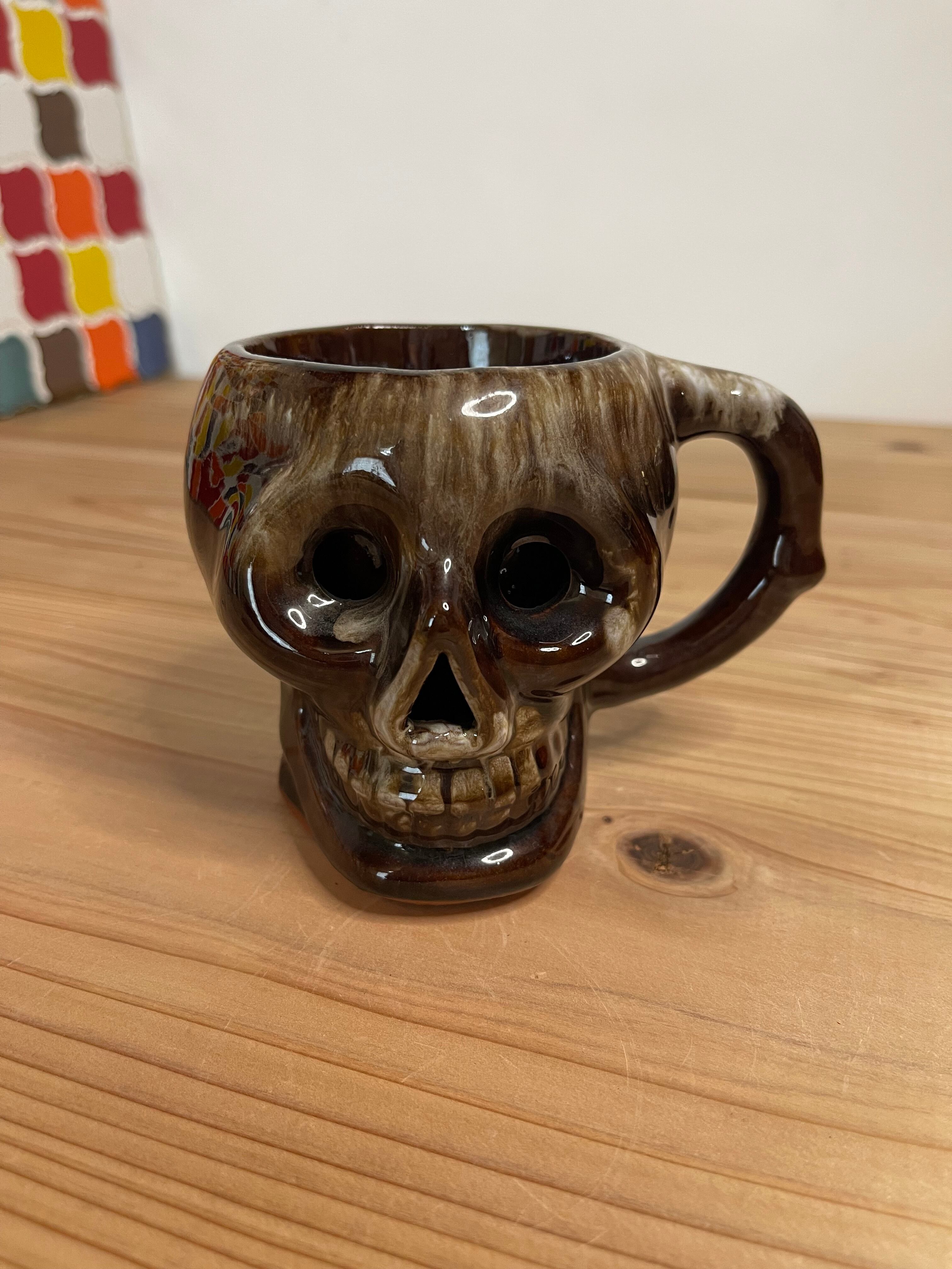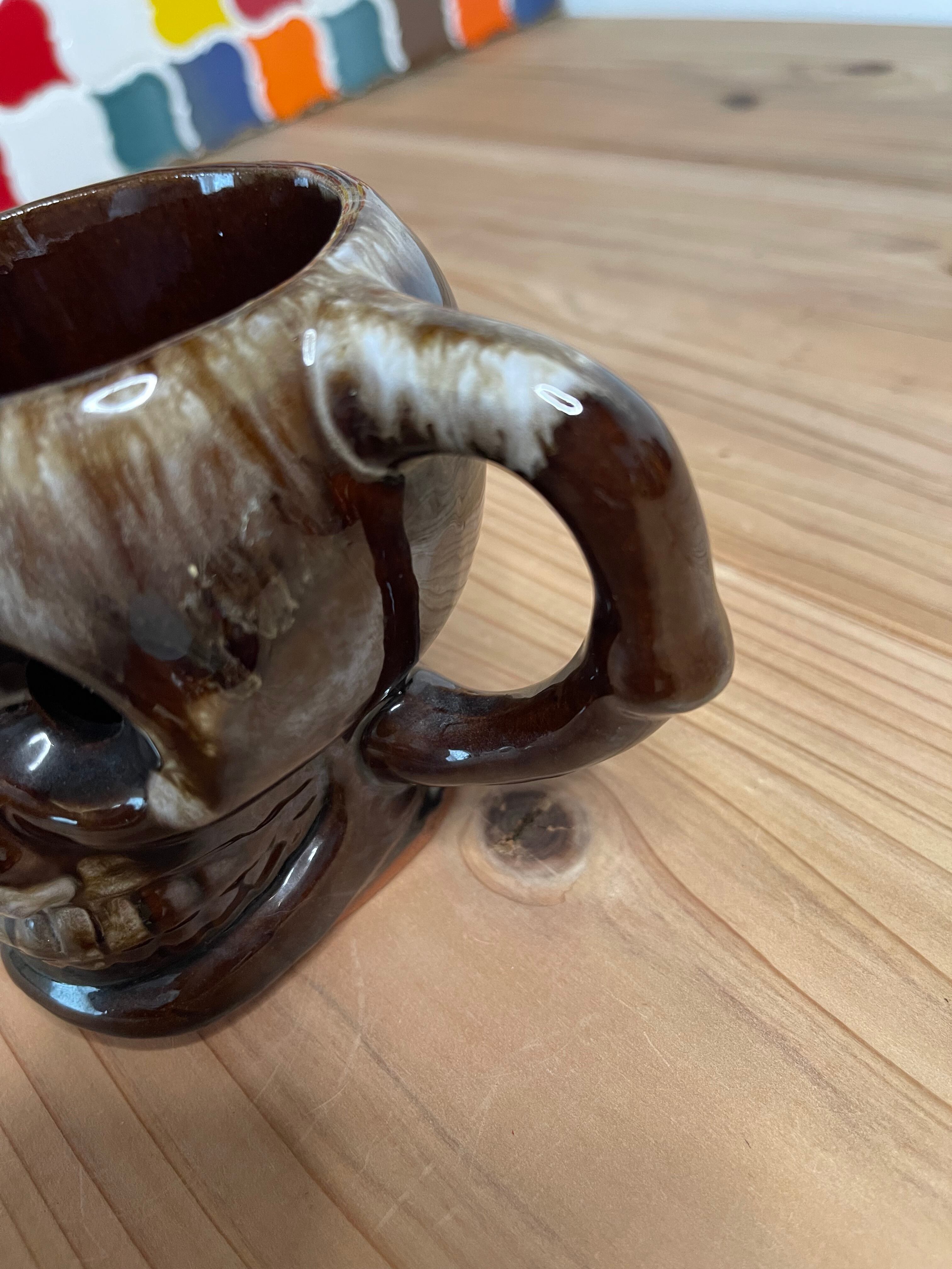 1960s Vintage “Drip Glaze White & Brown” Skull mug