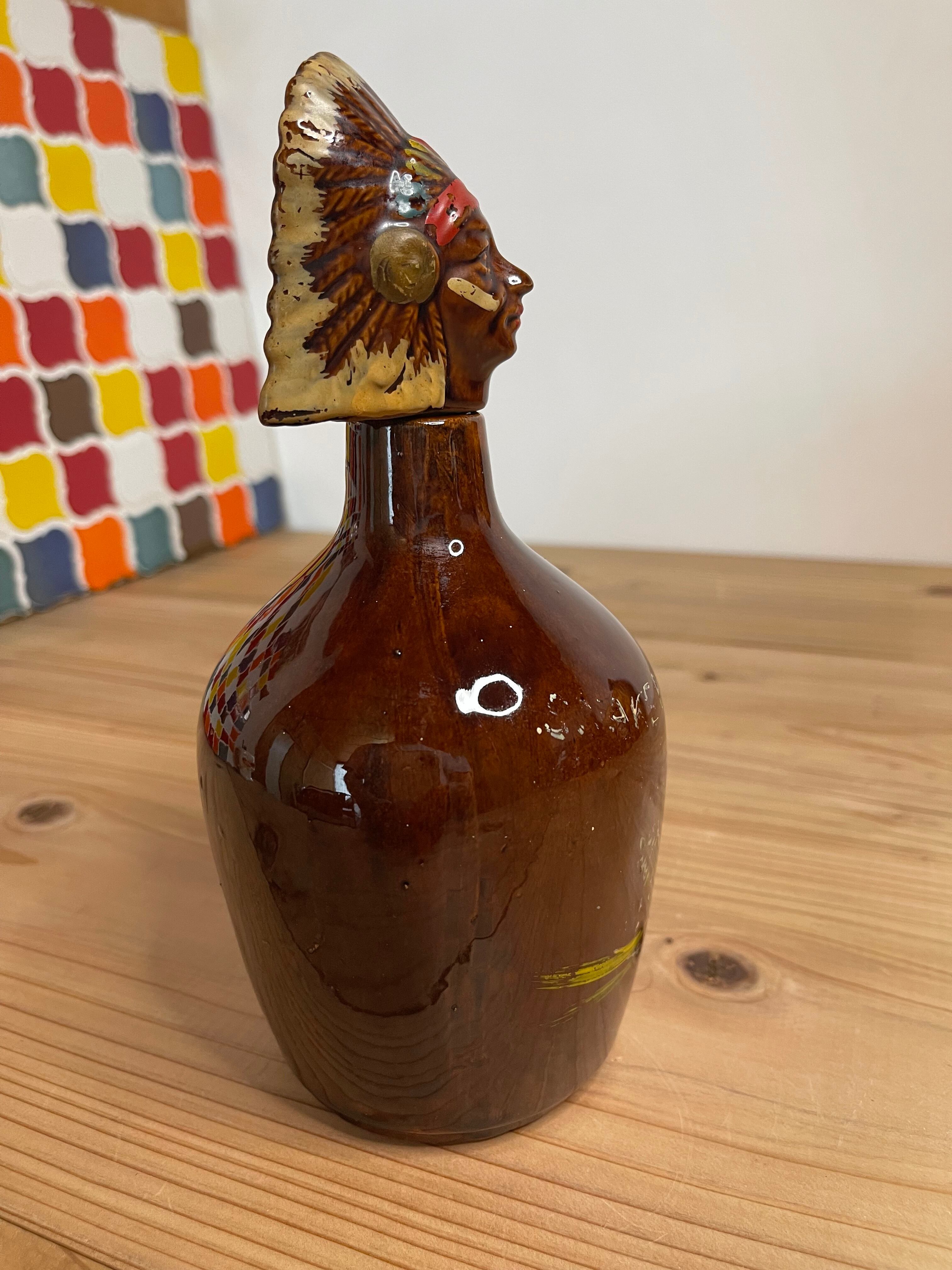 1960年代製、非常に珍しいネイティブアメリカンモチーフのヴィンテージデキャンタジャグです。