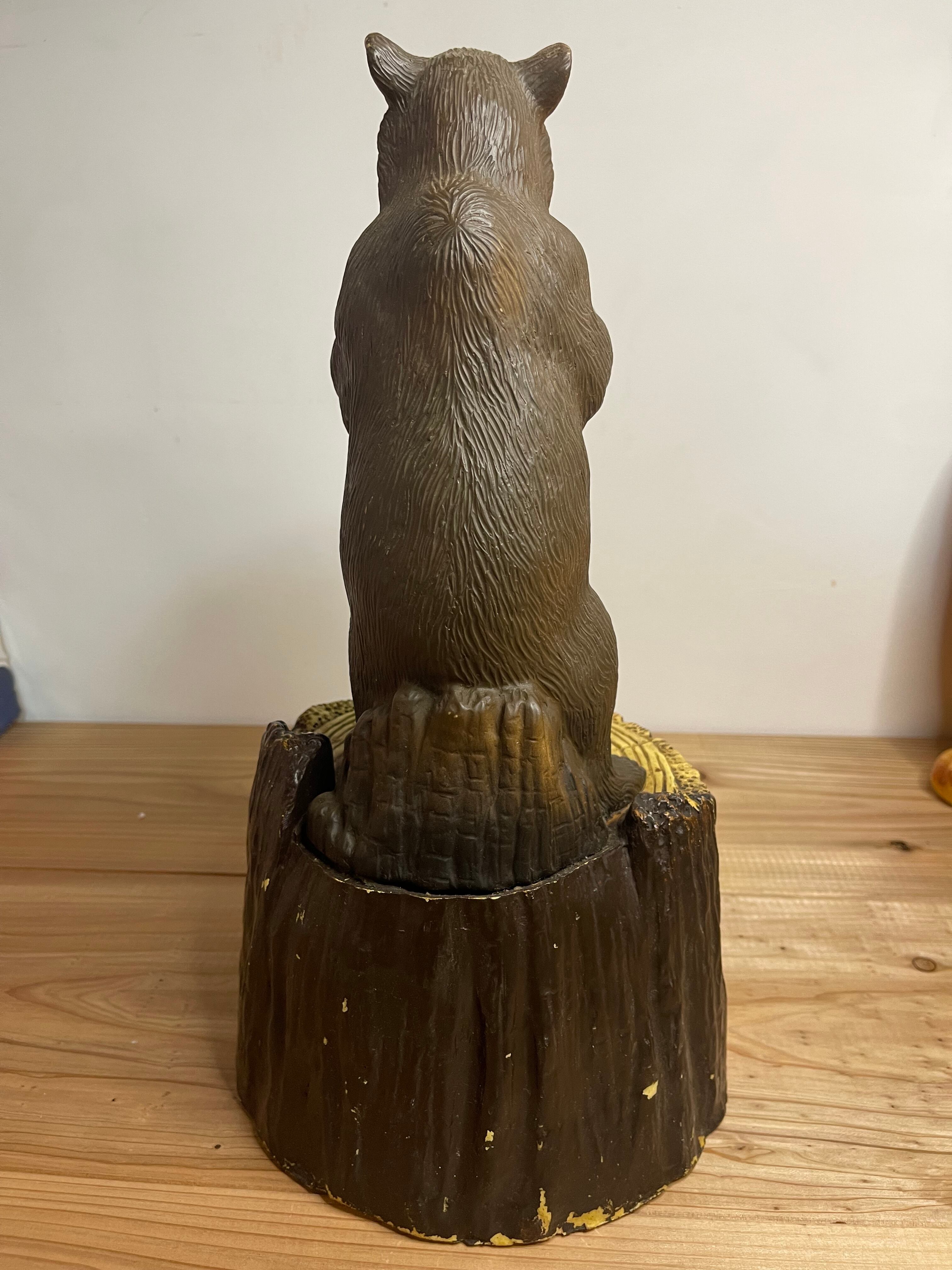 ビールボトルを抱える愛らしいグリズリーが、カウンターやガレージ、バースペースをユニークに彩ります。ディスプレイ本体は切り株型で、発泡ウレタン製、グリズリーはソフトビニール製、ボトルはガラスになってます。当時のプロモーションアイテムとして使われていた希少なアイテムです。