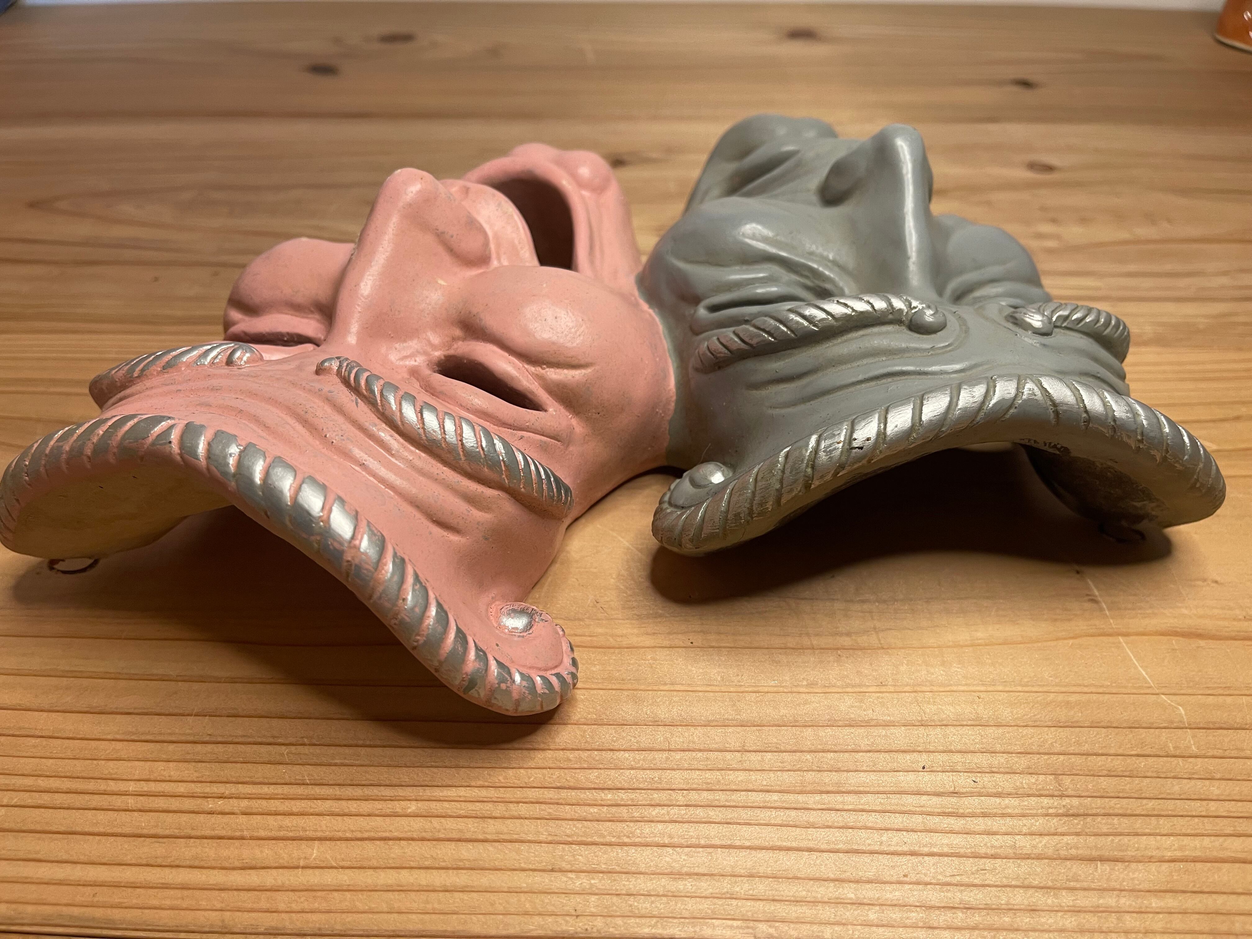 1950年代の”UNIVERSAL STATUARY”CHALKWARE製 TWOFACEのWALL DECOになります。経年による塗装の剥がれなどが多少ございます。この年代にしては保存状態が良いと思います。