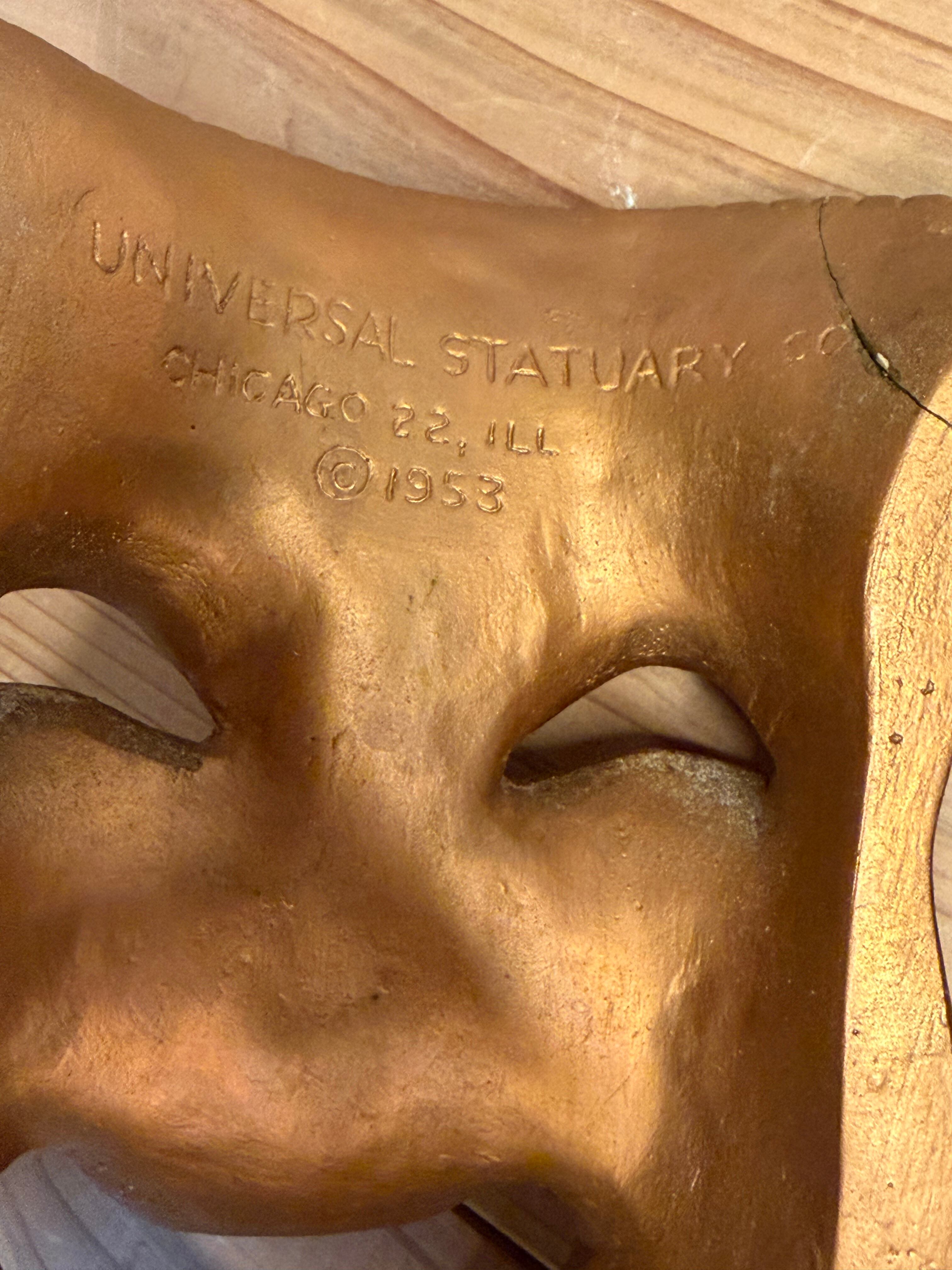 1950’s VINTAGE UNIVERSAL STATUARY COMEDY & TRAGEDY TWO FACE WALL DECO