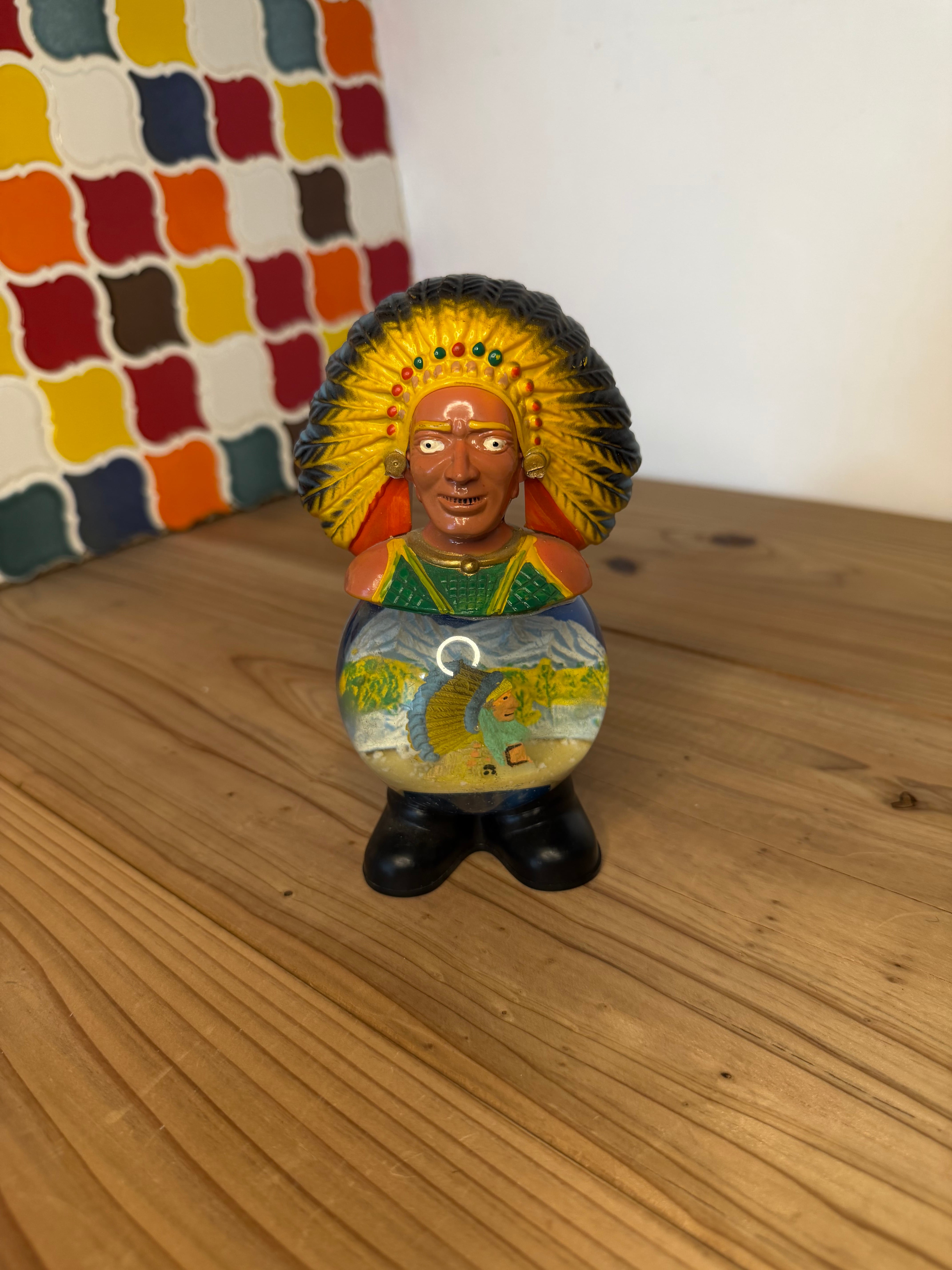 Circa 1960s–70s Vintage Souvenir Native American Bust Snow Globe